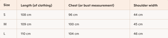 - Size : S, M, L