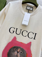 Gucci 25 Kitten Short-sleeved T-shirt Beige Brown Cotton