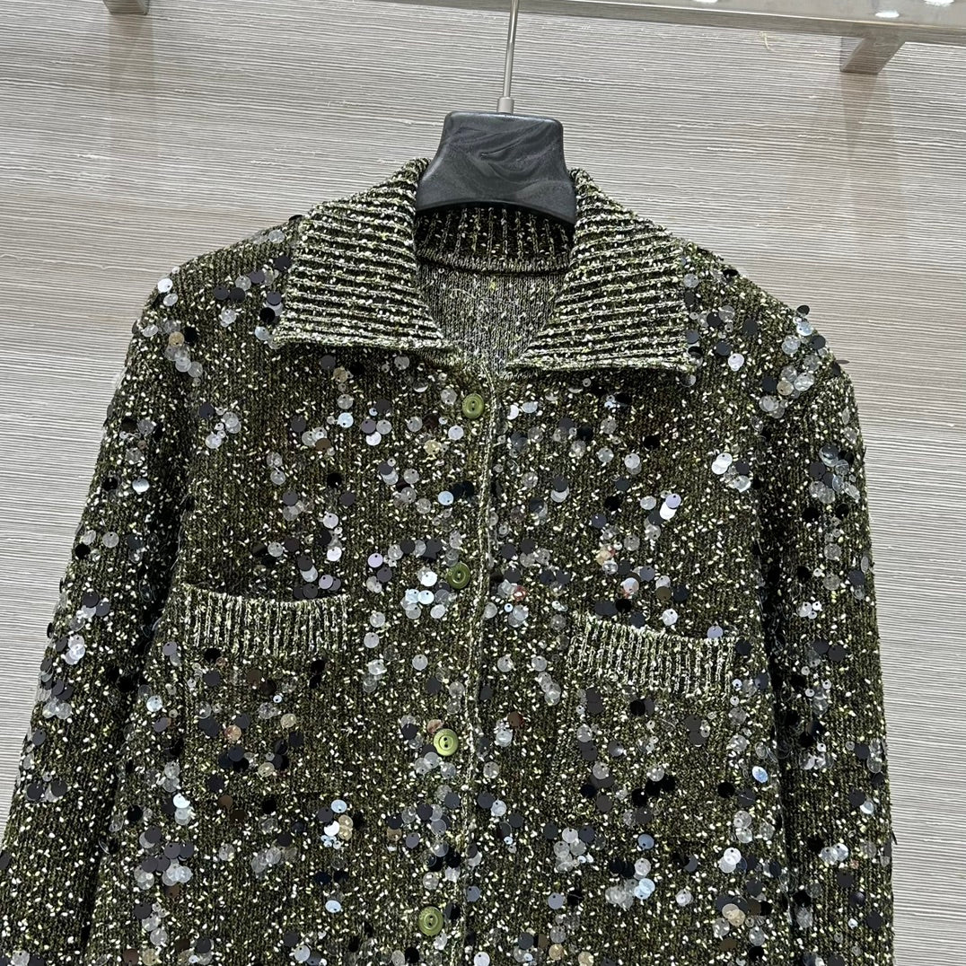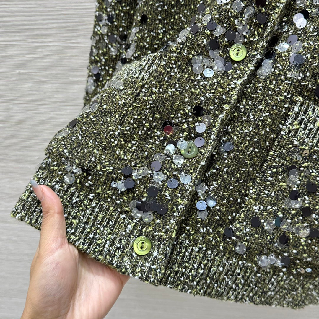 Gucci 25 Knitted Polo Long-sleeved Top Green Gray Wool