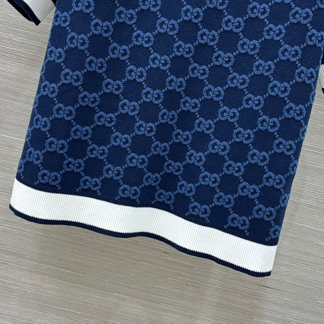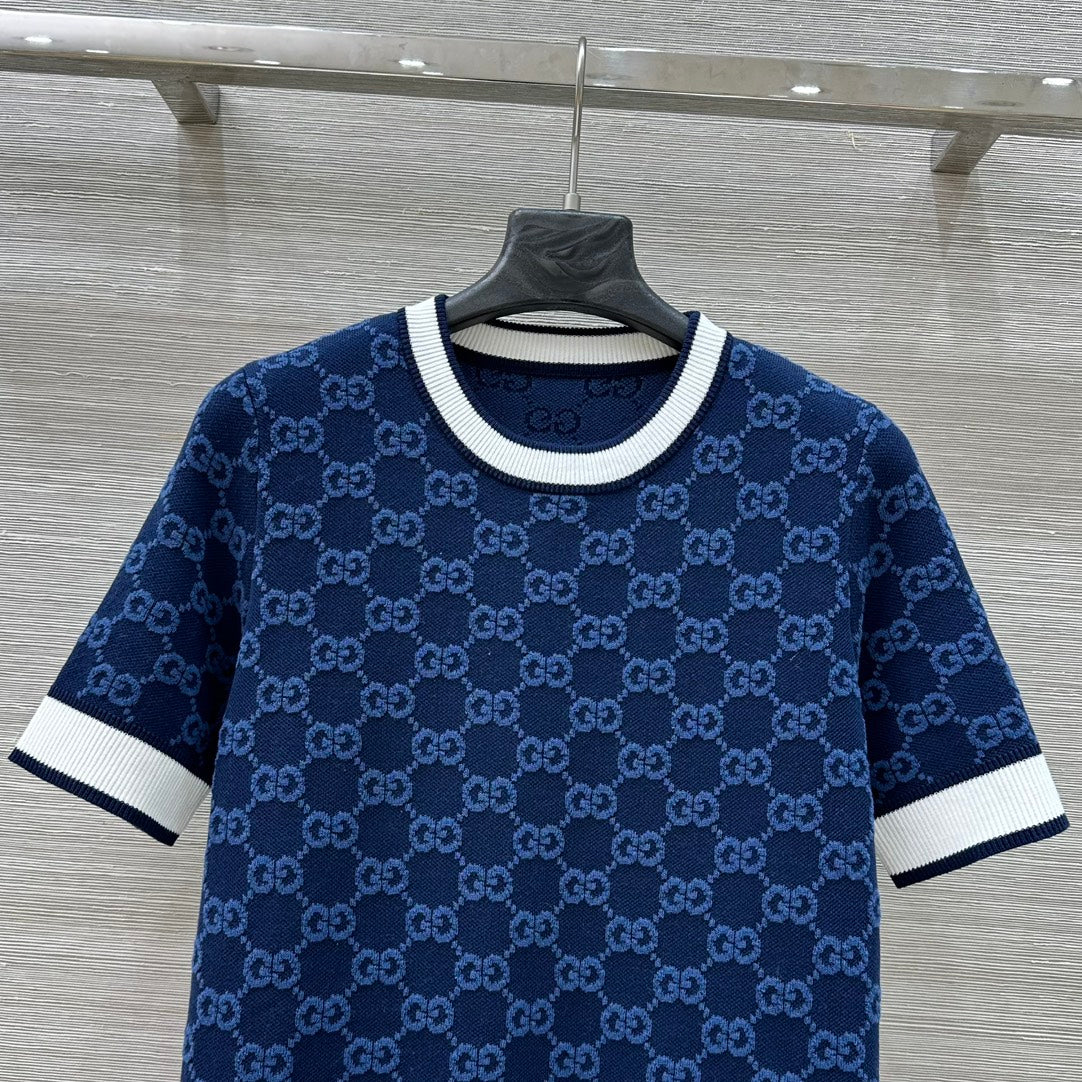 Gucci 25 Knitted Round Neck Short-sleeved Top Dark Blue Wool