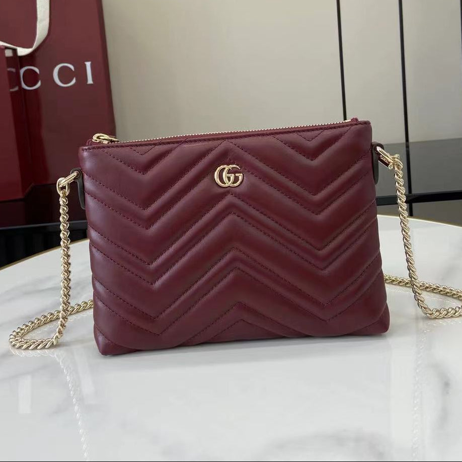Gucci 25 Marmont Pochette With Chain Rosso Ancora Red Cowhide 294894