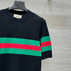 Gucci 25 Mesh Short-sleeved Top Black Tencel