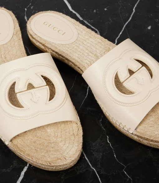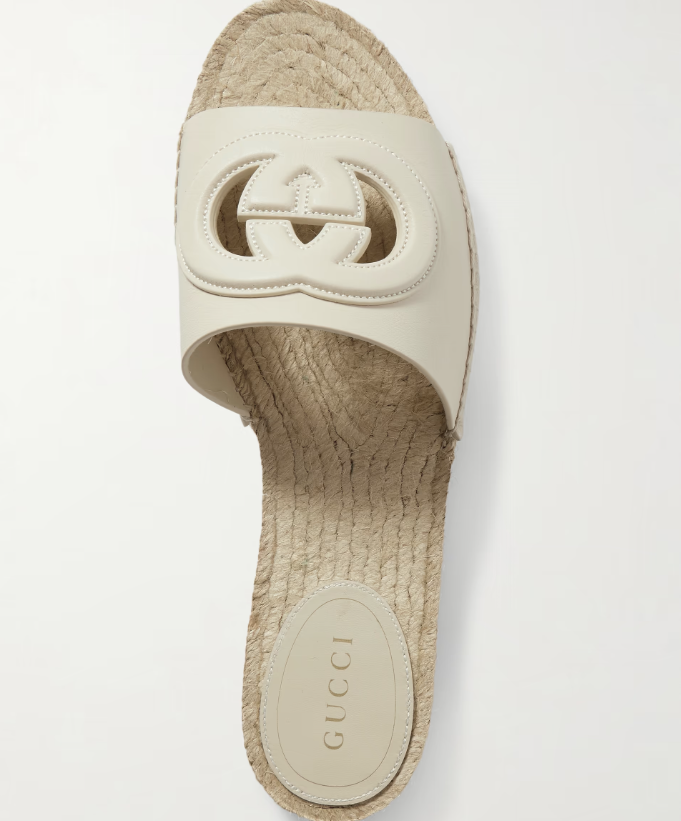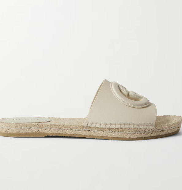Gucci Cutout Espadrille Slides Ivory Leather