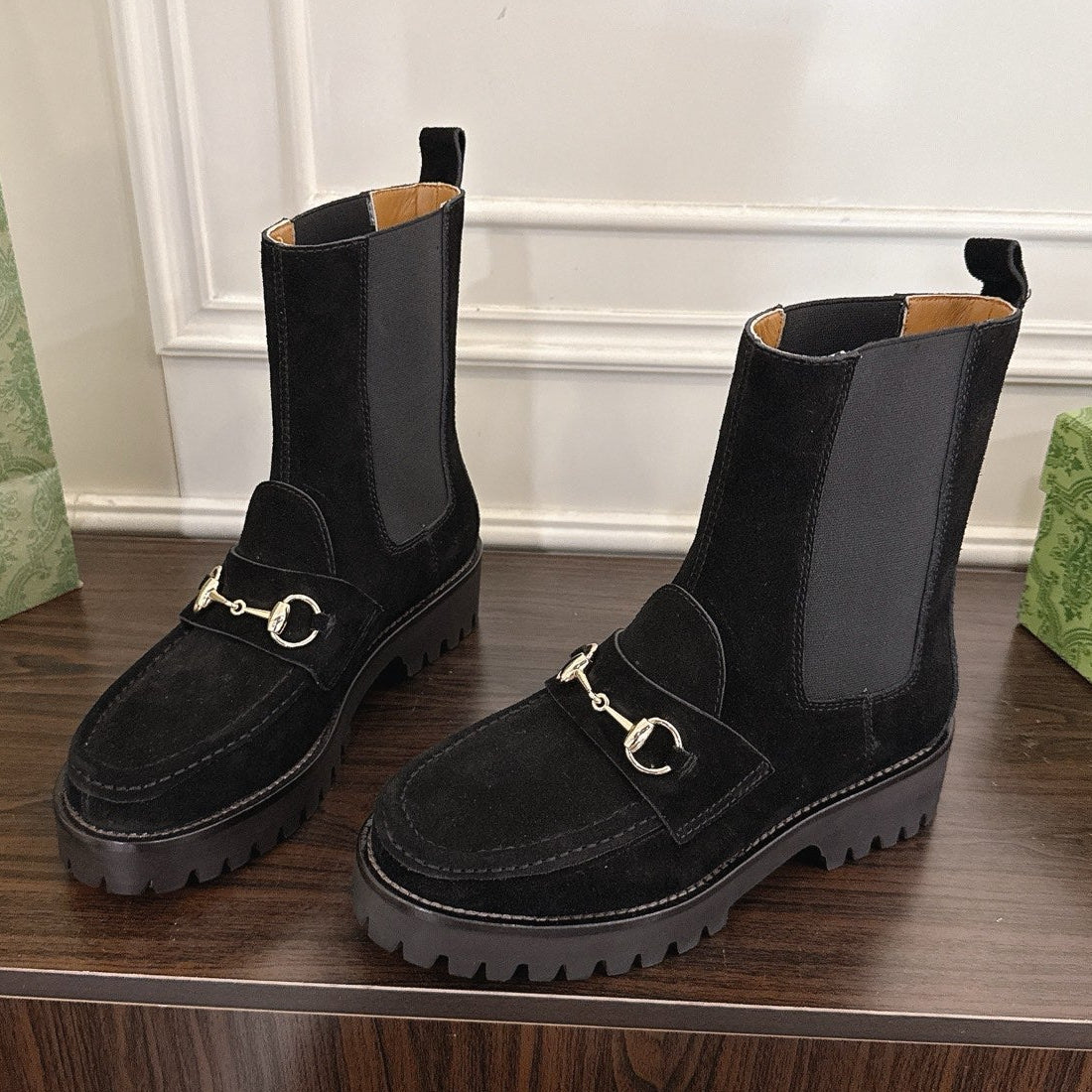 Gucci Horsebit Ankle Boots Black Suede Sheepskin 490528