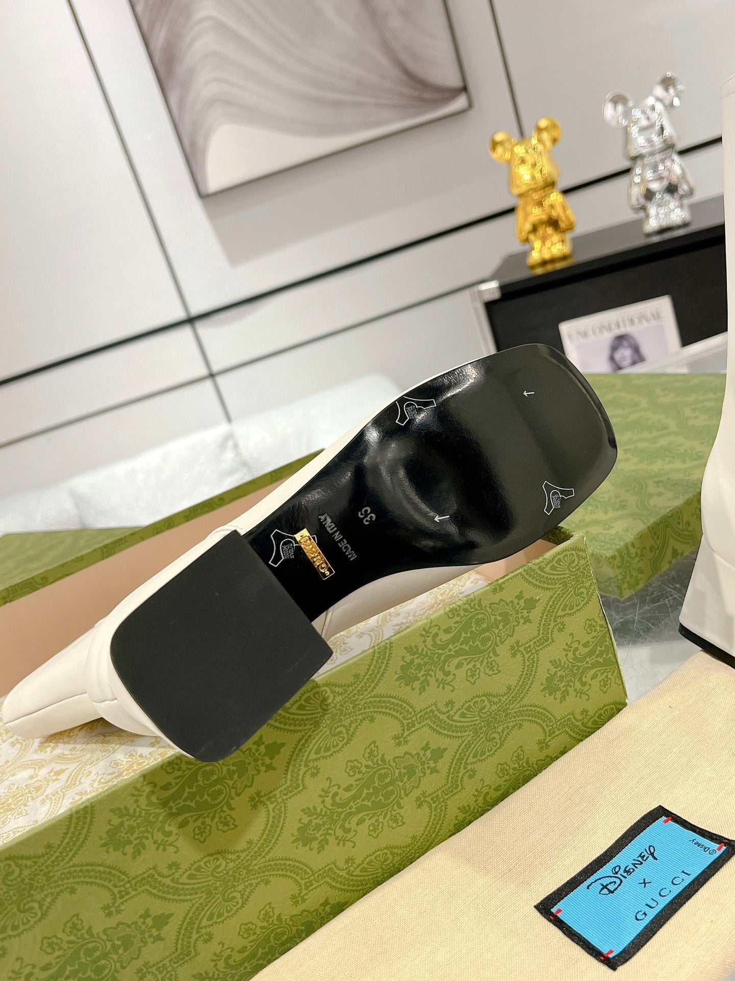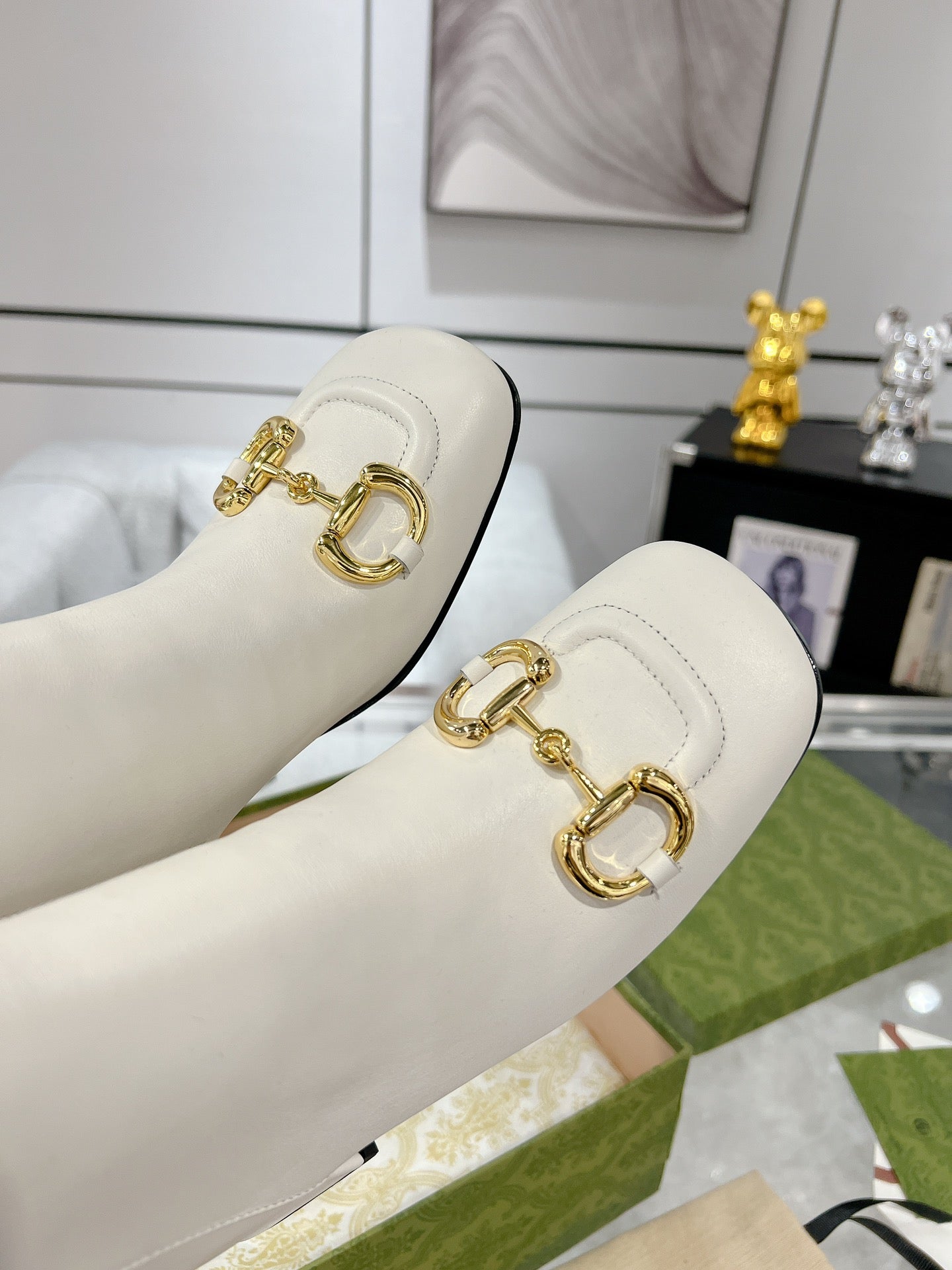 Gucci Horsebit Square Toe Mid-heeled Ankle Boots White Cowhide 490536