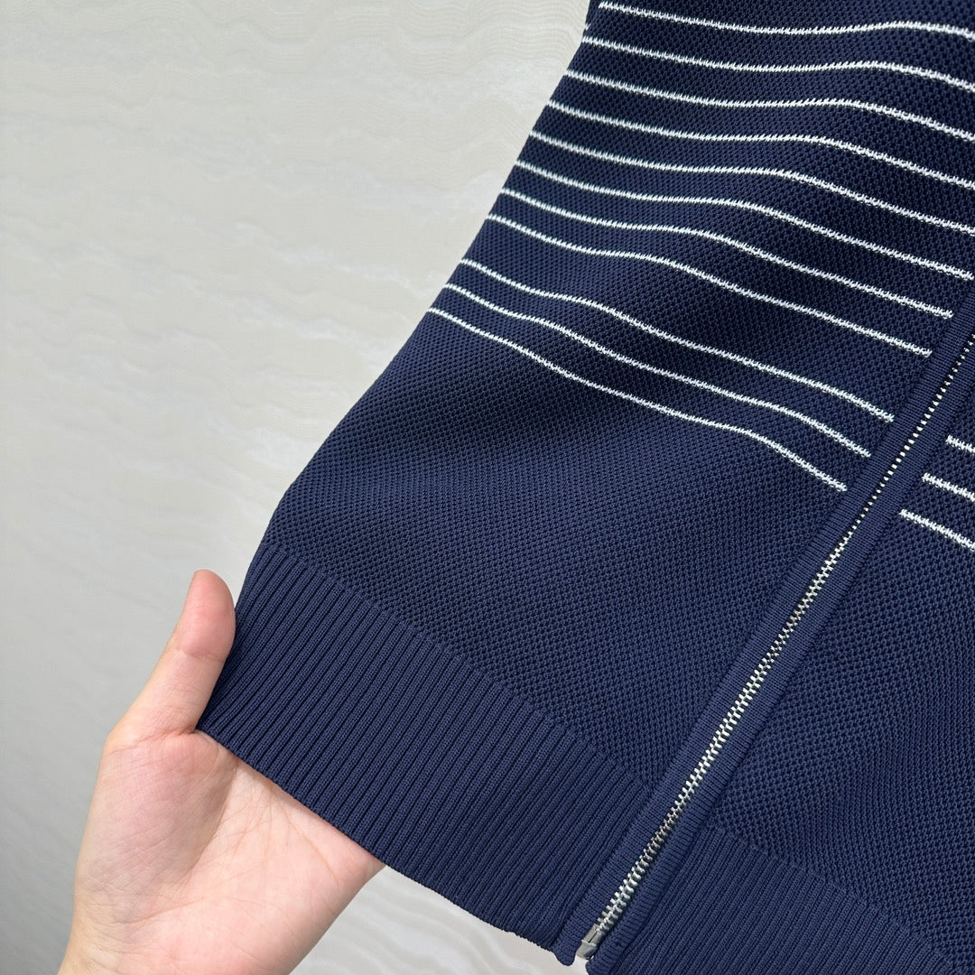 Gucci Knitted Zipper Jacket Dark Blue Viscose