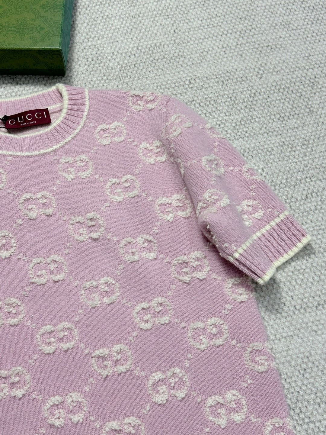 Gucci Knot Jacquard Knitted Short Sleeves Pink Wool