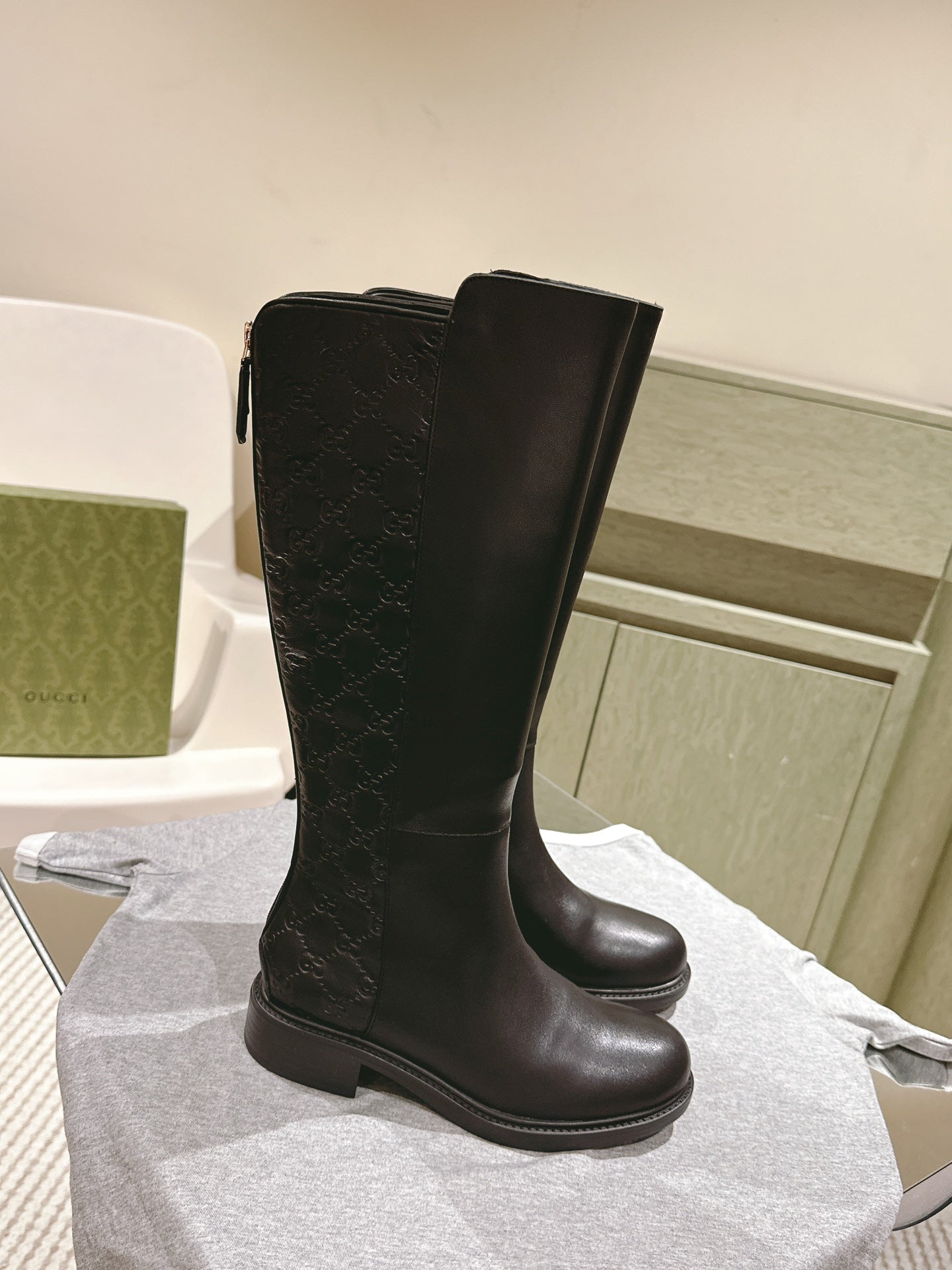 Gucci Riding Long Boot Black Sheepskin 484877