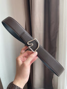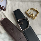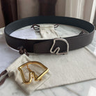 H BELT HORSE BUCKLE DARK BROWN BLACK LEATHER REVERSIBLE 3.8CM