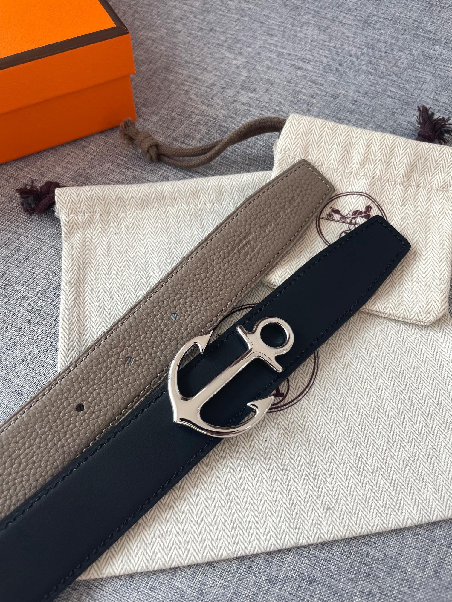 H CARGO BELT 32MM TIN GREY BLACK LEATHER