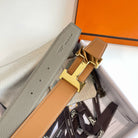 H CONTANCE BELT 38MM GOLD BUCKLE GOLD GREY LEATHER