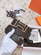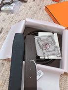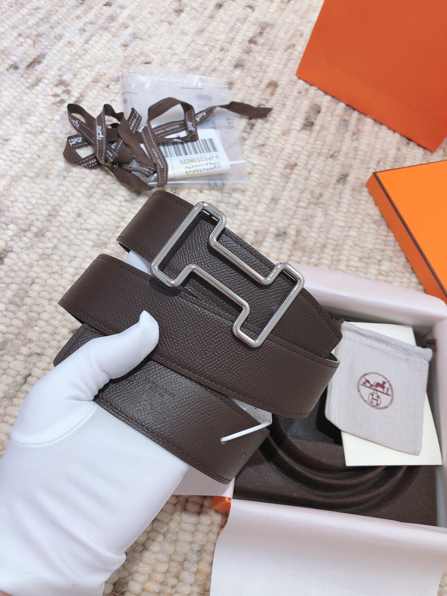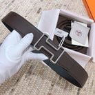 H TONIGHT BELT 38MM CHOCOLATE PRUSSIAN BLUE LEATHER