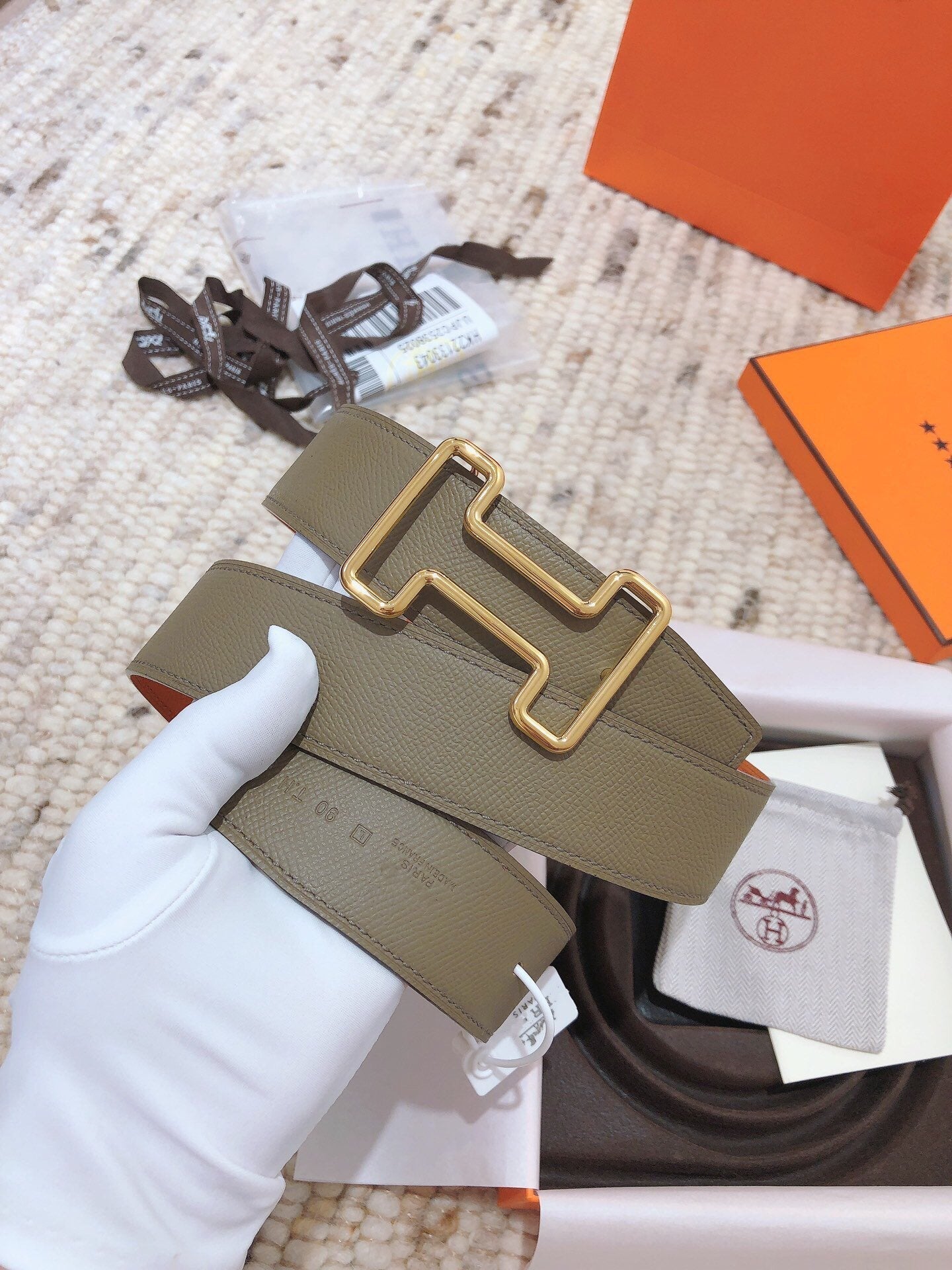 H TONIGHT BELT 38MM ORANGE GREEN GREY LEATHER