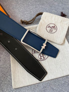H TUBE BELT 38MM SILVER BUCKLE BLUE BLACK LEATHER