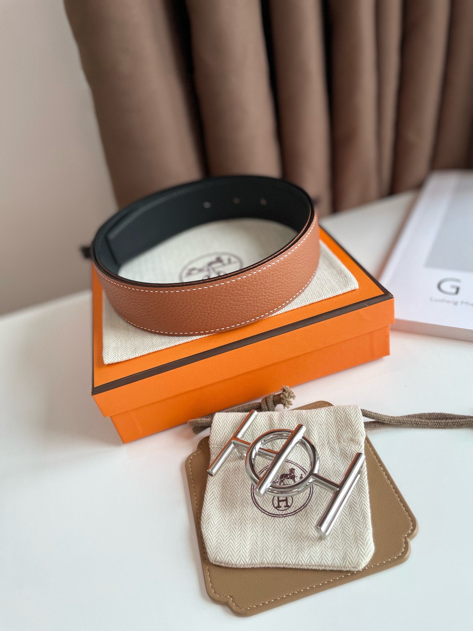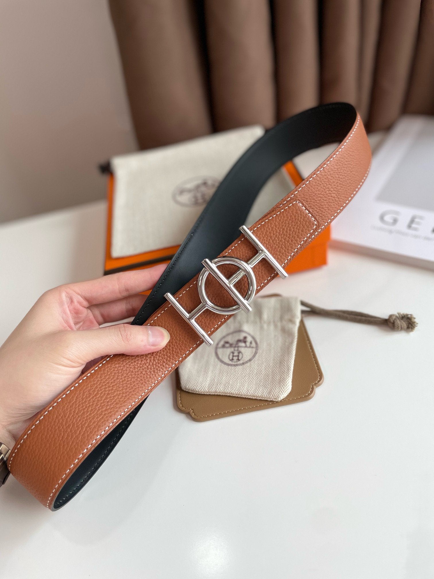 H ULYSSE BELT 38MM SILVER BUCKLE BLACK BROWN LEATHER