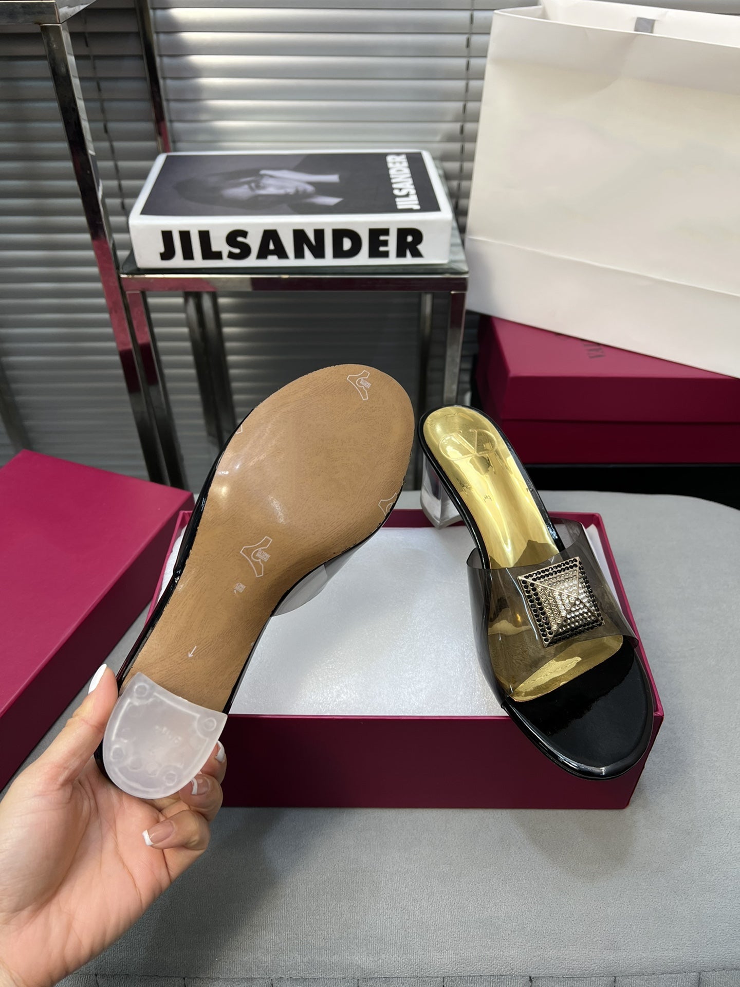 Heeled Sandals 6cm with Crystal Square Buckle Gold and Black