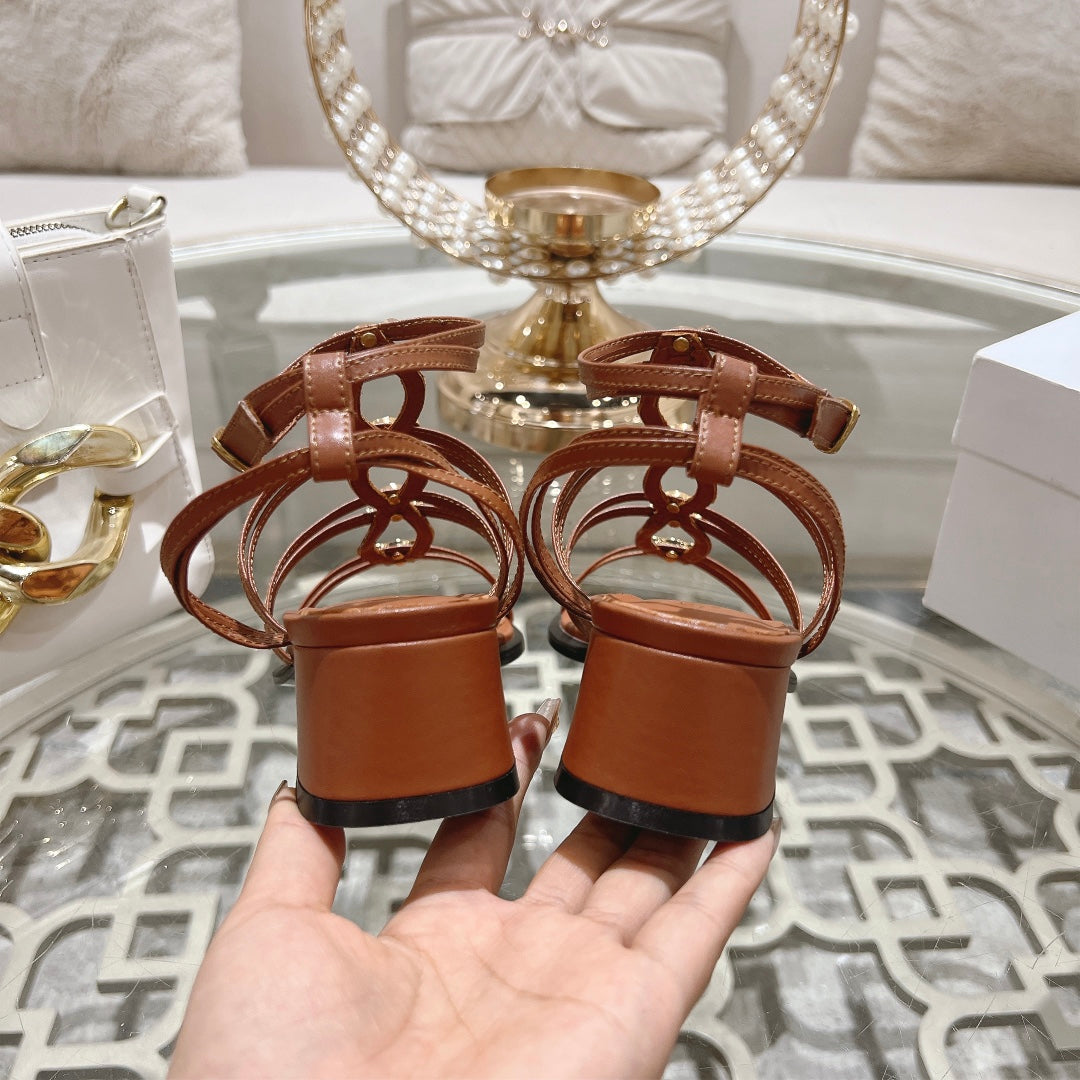 HIGH 45MM BLOCK HEEL SANDAL IN RUSSET BROWN LAMBSKIN
