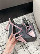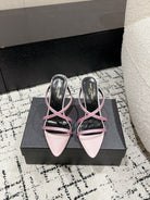 HIGH CRYSTAL STRAP SANDALS IN LIGHT PINK SILK