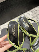 HIGH CRYSTAL STRAP SANDALS IN PEAR GREEN SILK