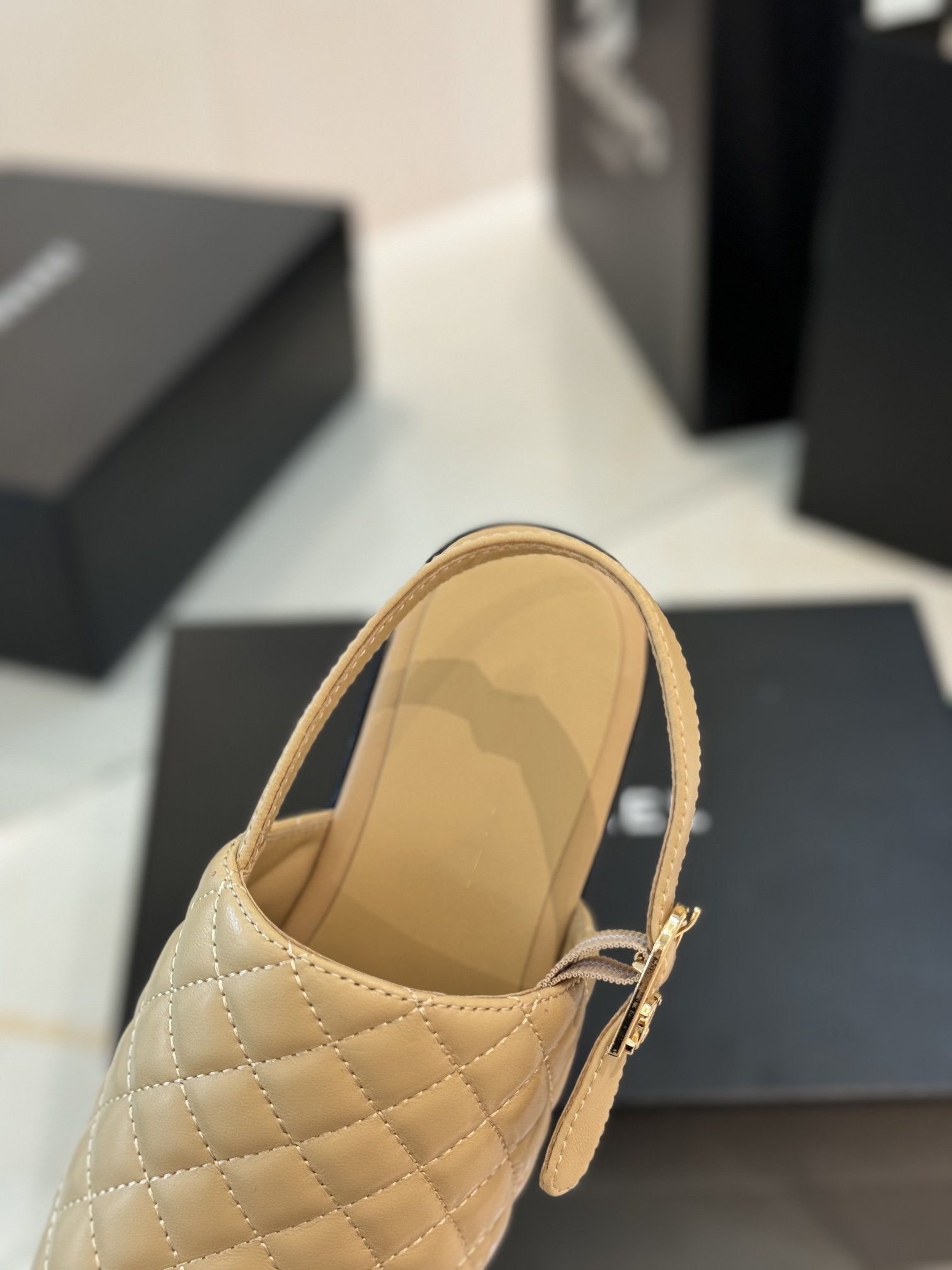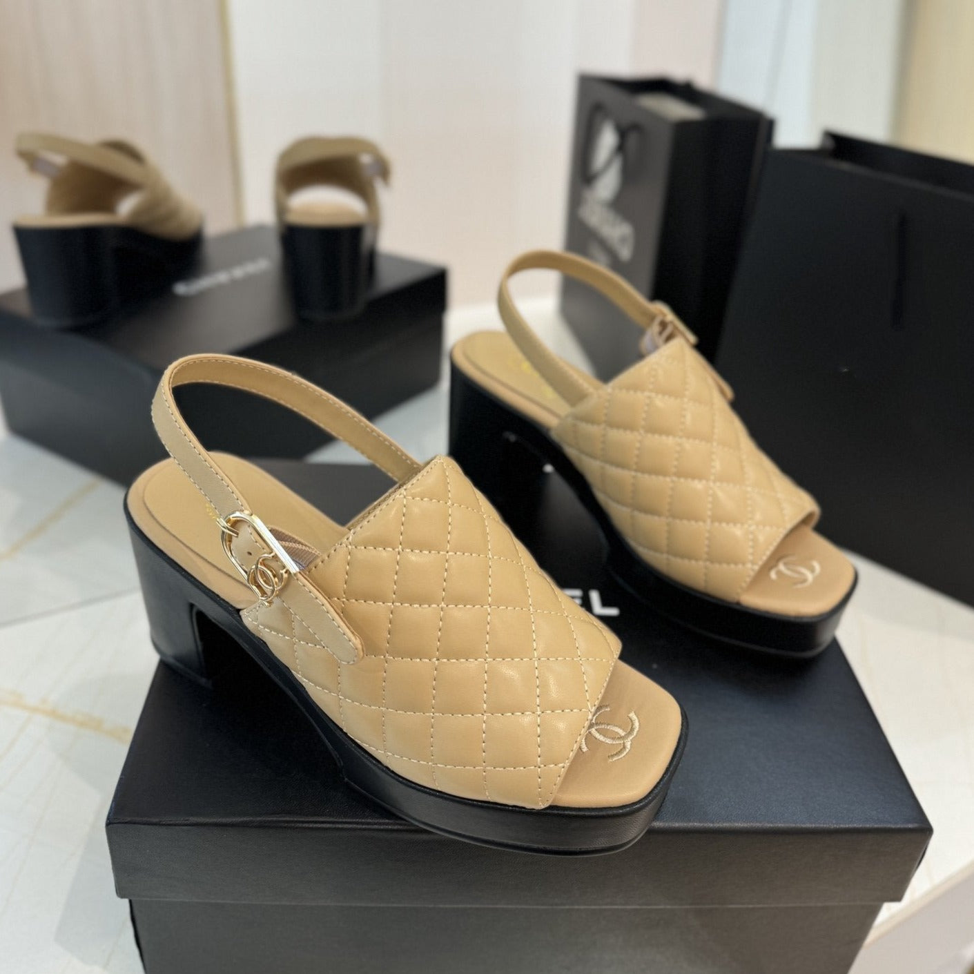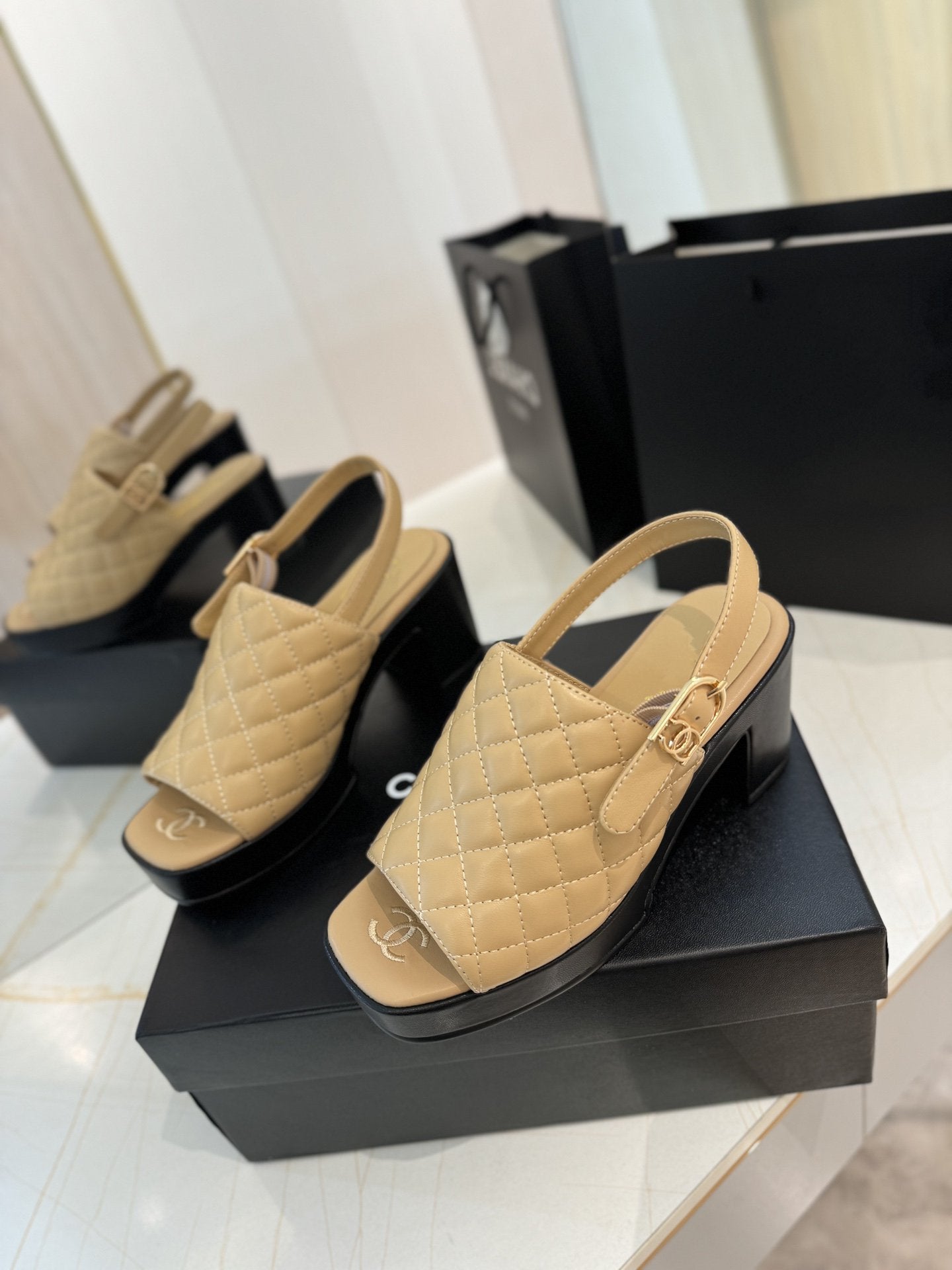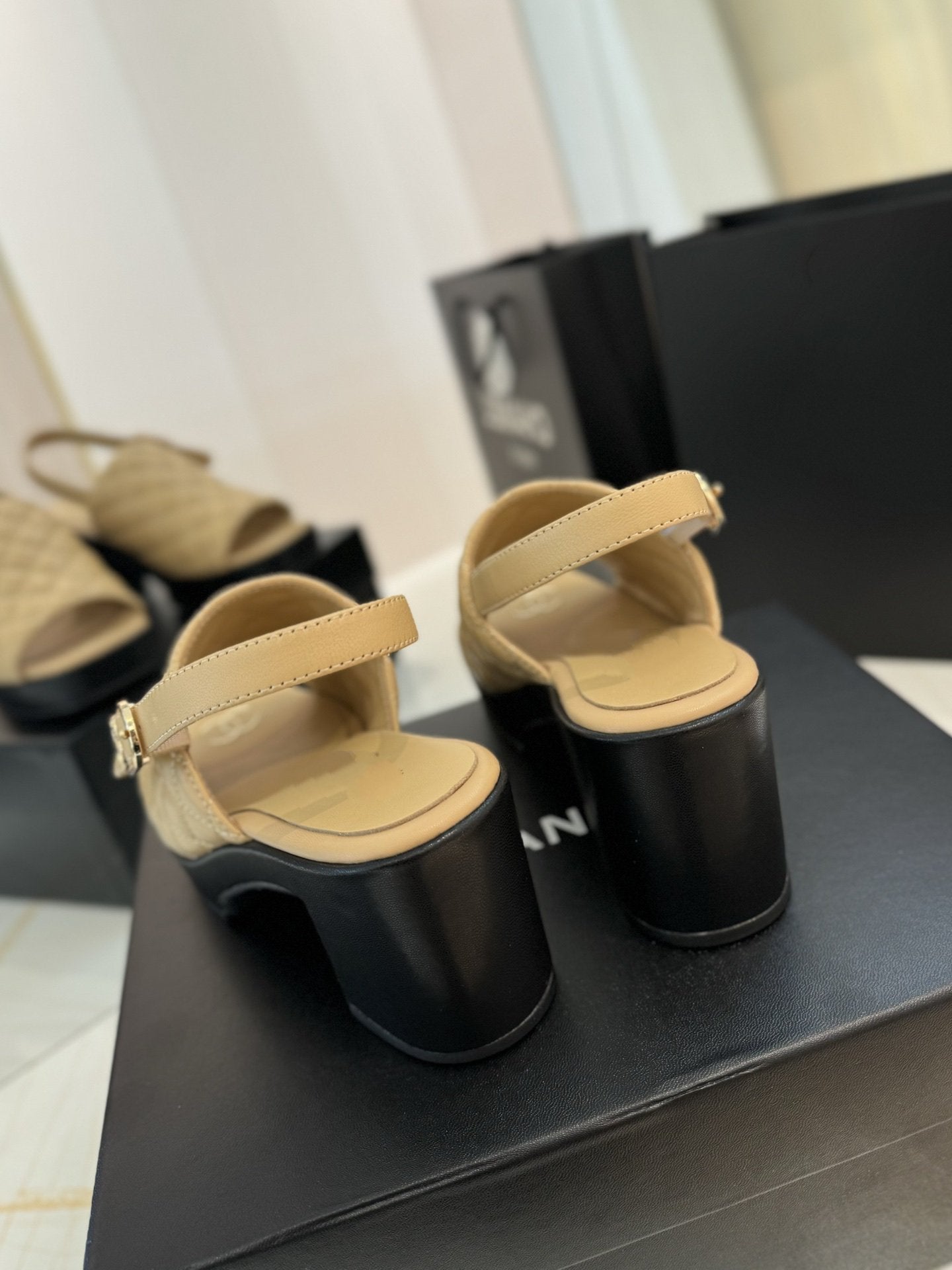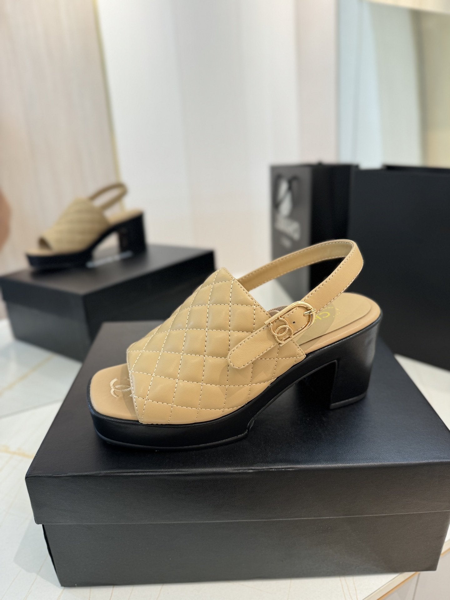 high heel 100 slingback sandal beige black quilted calfskin
