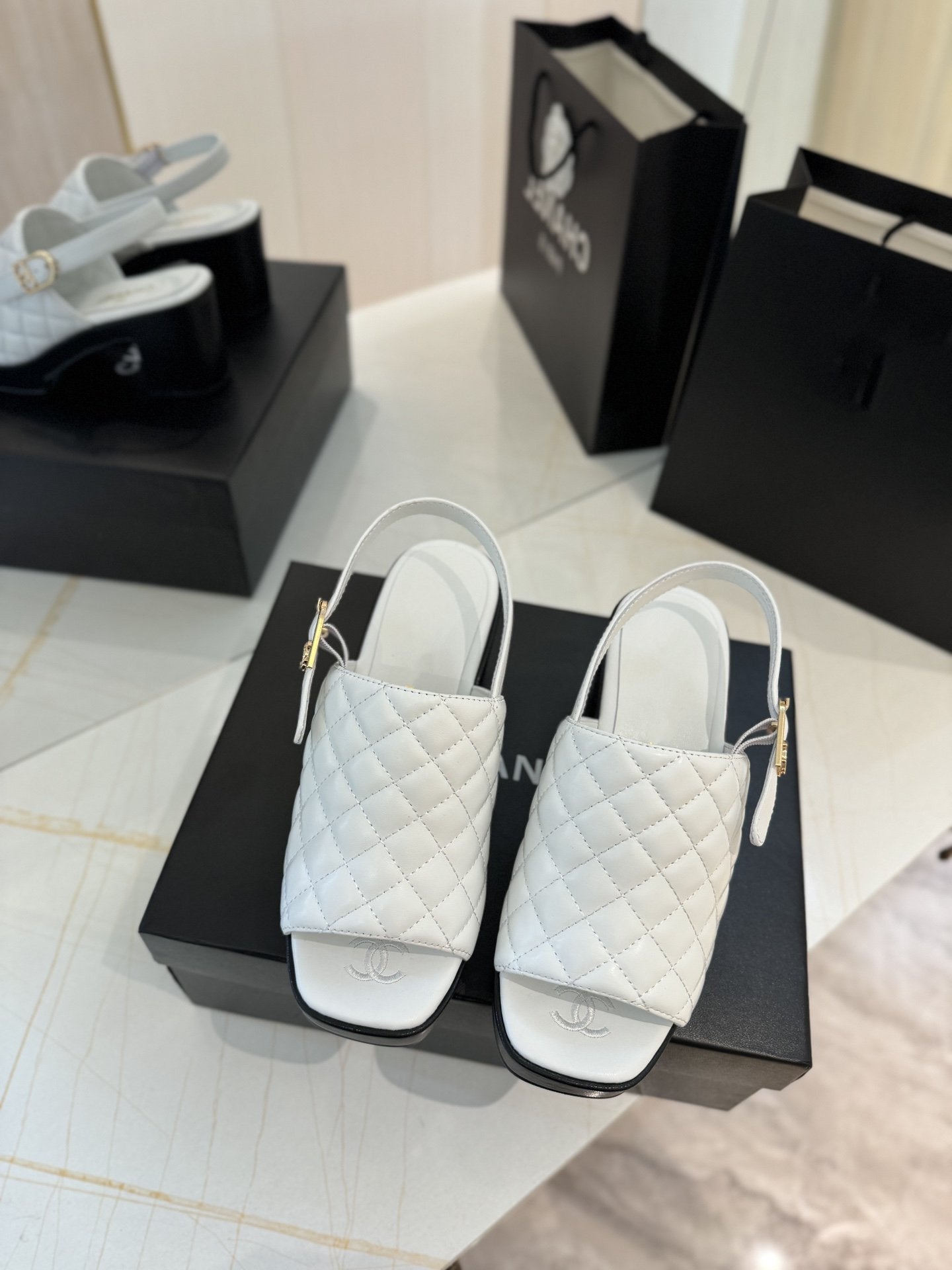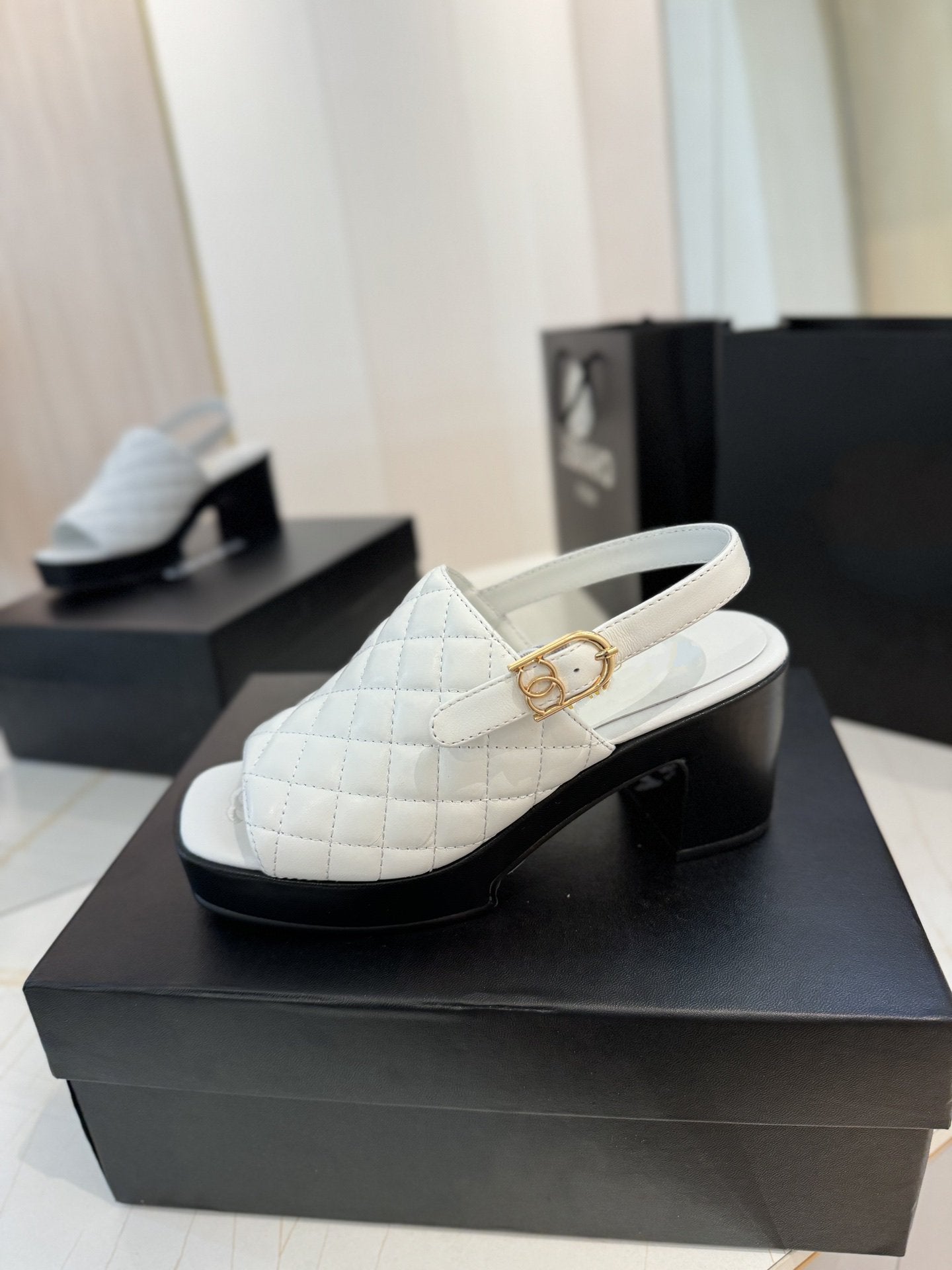 high heel 100 slingback sandal white black quilted calfskin