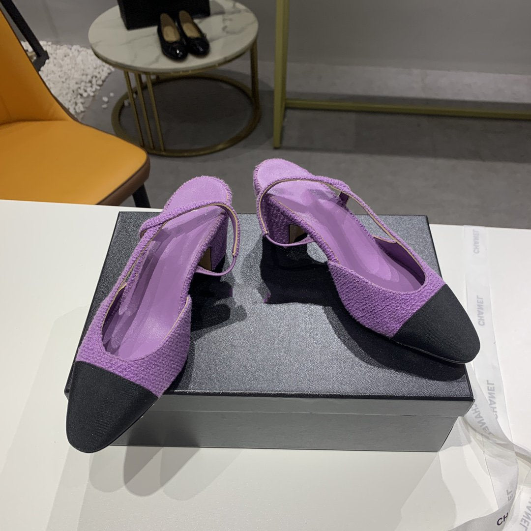 high heel 50 slingbacks purple black lambskin tweed