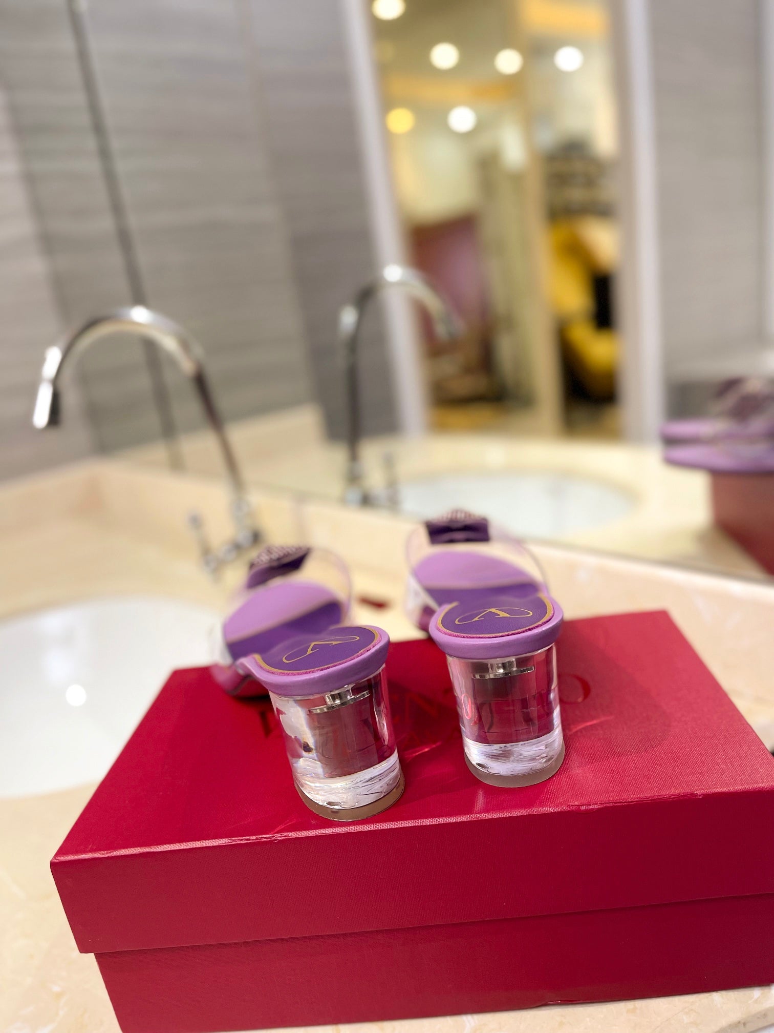 HIGH MULE 60MM IN MAUVE PURPLE SHEEPSKIN AND TRANSPARENT PVC