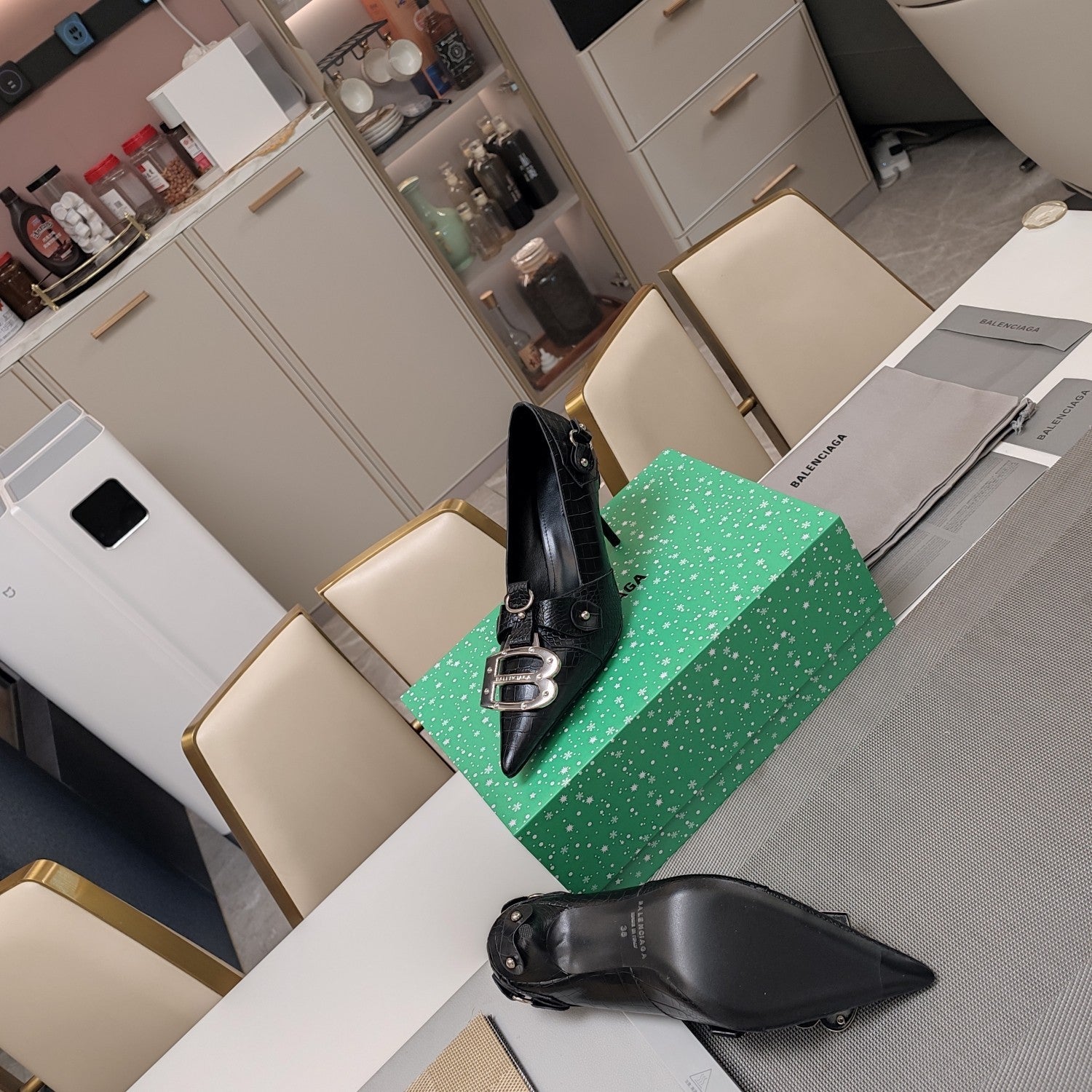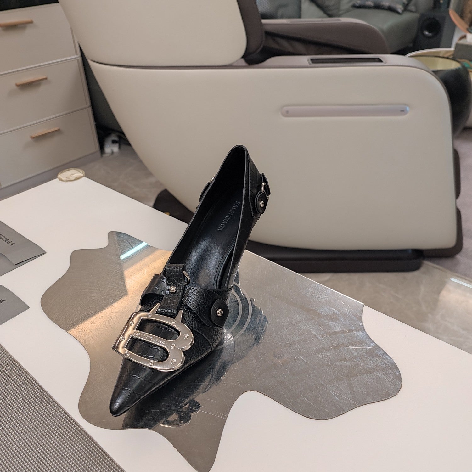 HIGH PUMPS WITH B SILVER BUCKLE IN BLACK CROCODILE PATTERN CALFSKIN