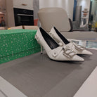 HIGH PUMPS WITH B SILVER BUCKLE IN WHITE CROCODILE PATTERN CALFSKIN