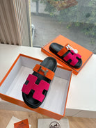 HM 25 Chypre Sandal Orange Red Suede Calfskin Silver H