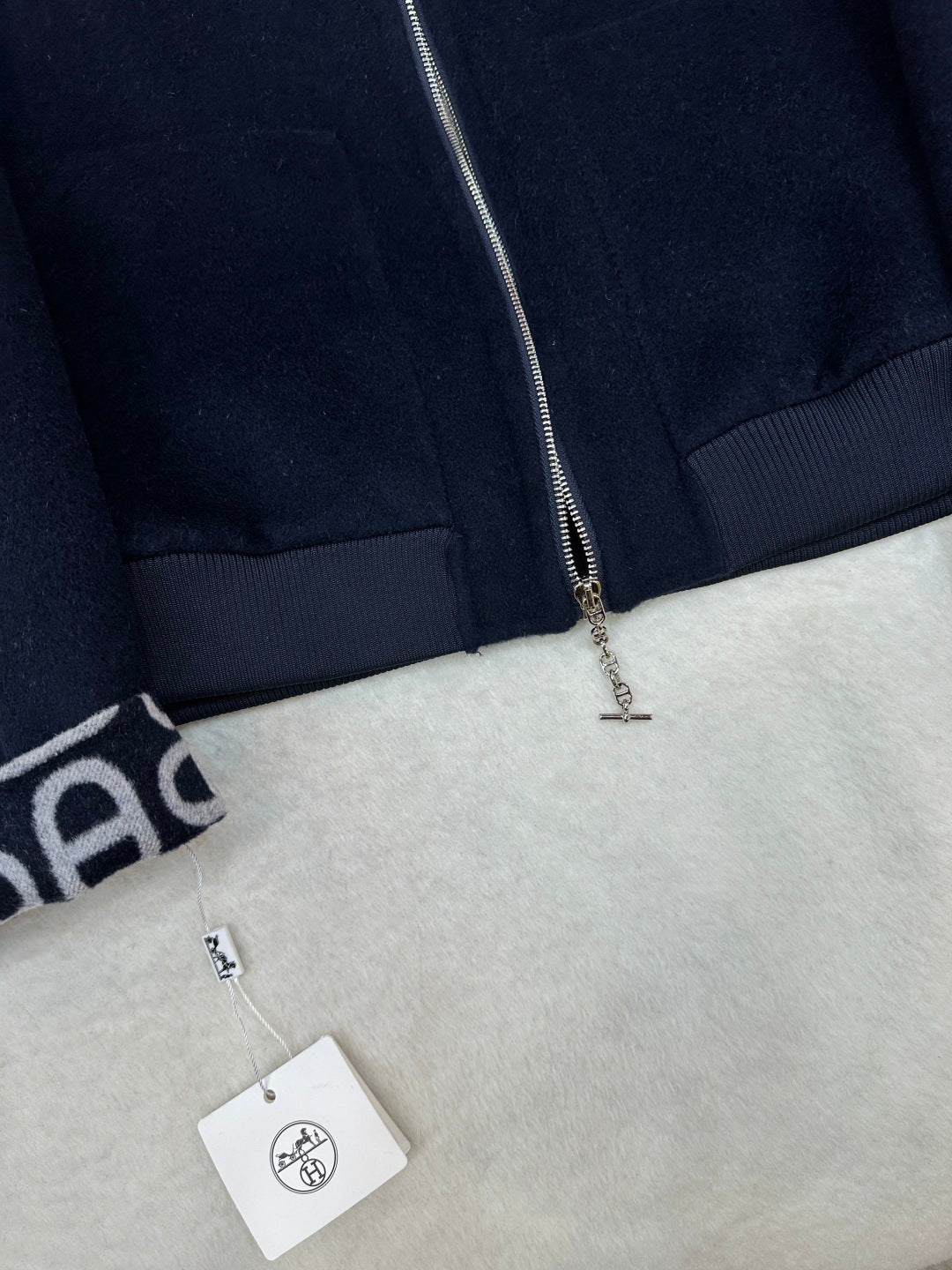 HM 25 Navy Blue Cashmere Cropped Coat 280337