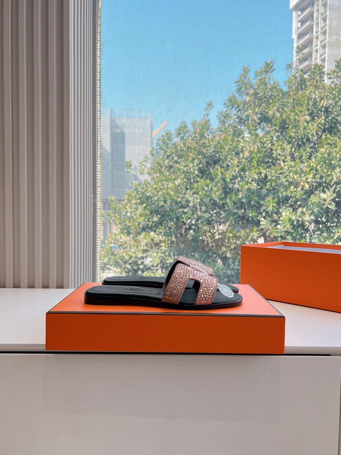 HM 25 Oran Sandal Black Nude Calfskin Rhinestone