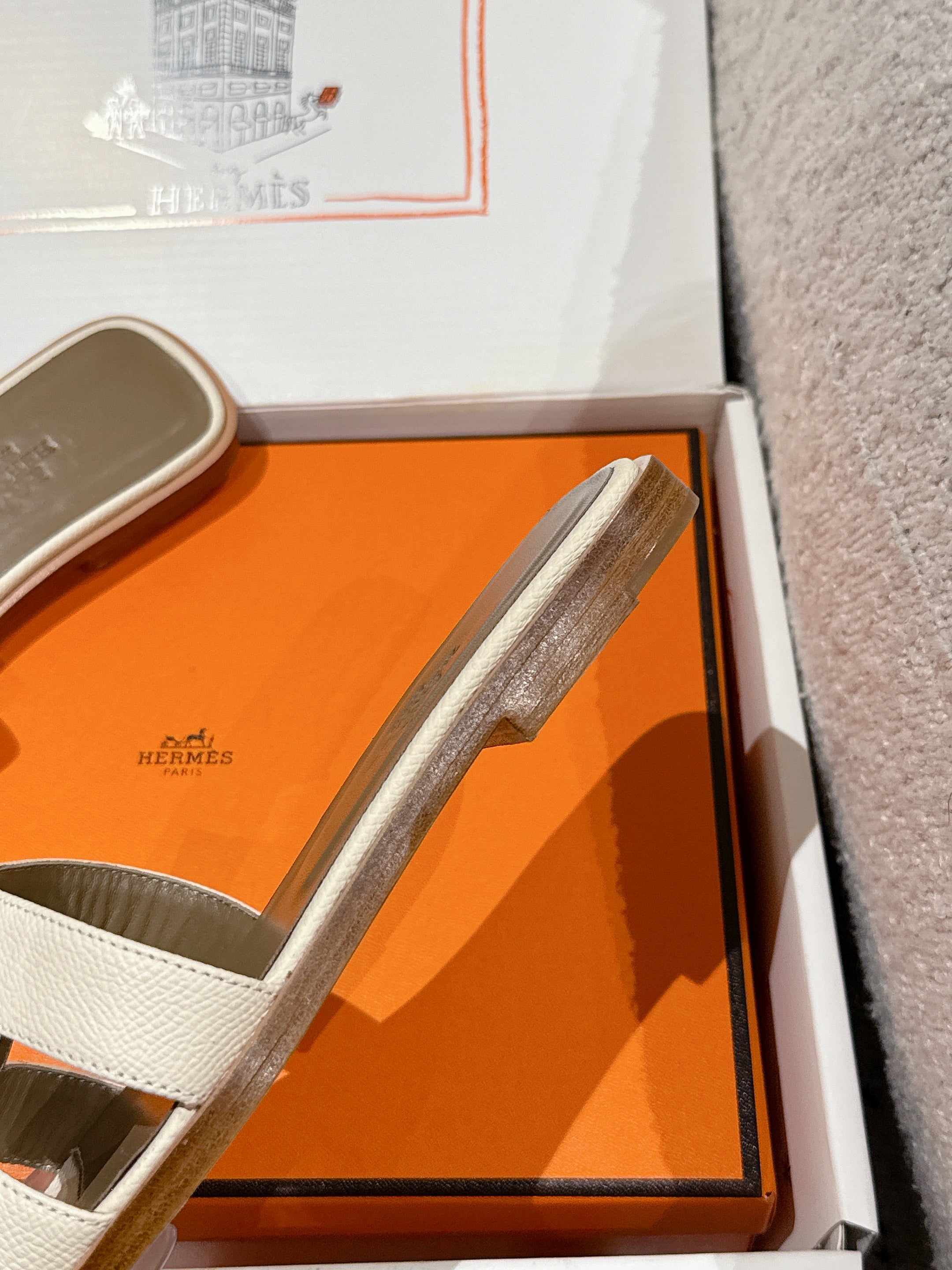 HM 25 Oran Sandal Cream Epsom Etoupe Calfskin