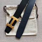 HM BELT BUCKLE & REVERSIBLE BLACK LEATHER STRAP 38MM GOLD HARDWARE