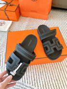 HM Chypre Sandal Black With White Stitching Lambskin 963494