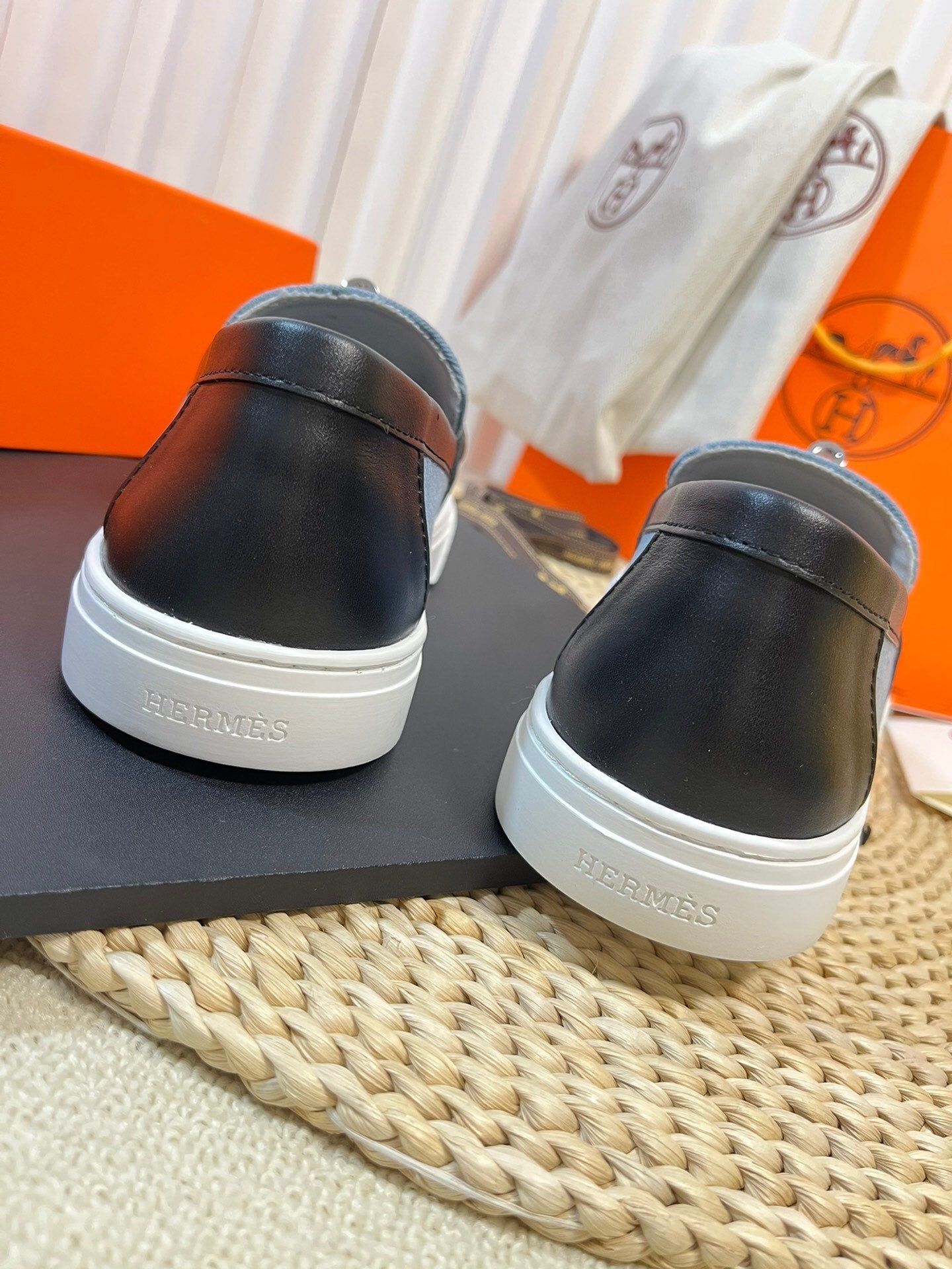 HM Denim Loafer Blue Black Cowhide Cloth 317049