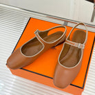 HM flat sandals brown lambskin 474117