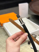 HM FOCUS BUCKLE & REVERSIBLE TAWNY BROWN AND BLACK LEATHER STRAP 13MM SILVER HARDWARE