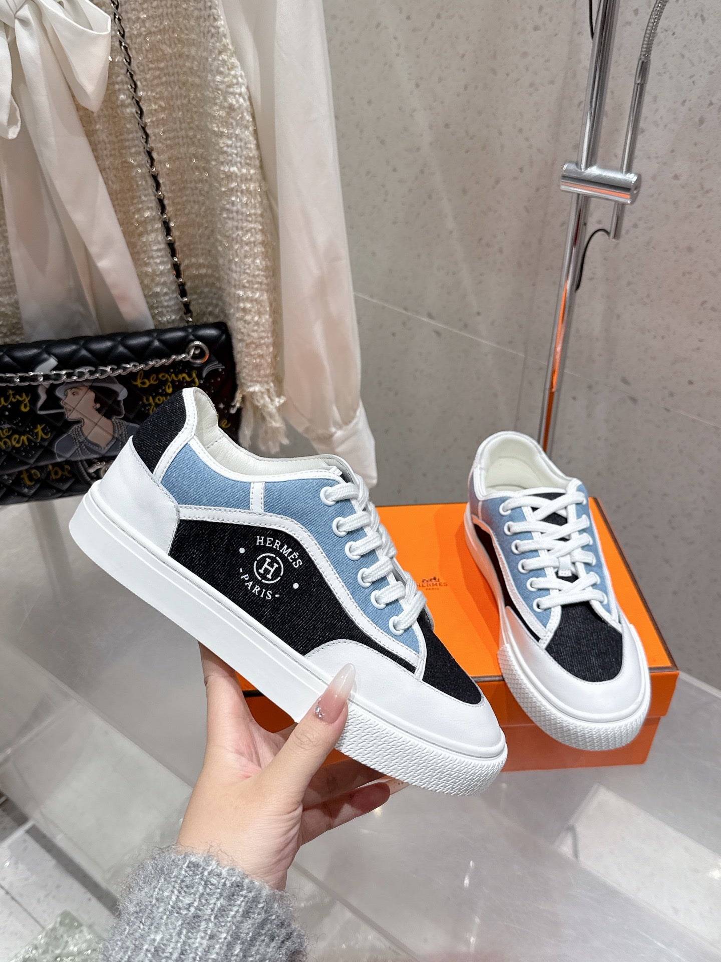 HM Get Sneaker Multicolore Bleu Brut Denim and Calfskin 204760