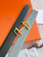 HM Gold Buckle 32mm Royal Belt Gray Brown Leather 188423