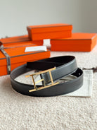 HM Gold Quentin Reversible 32mm Belt Black Chocolate Leather 188090
