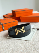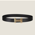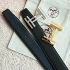 HM H au Carre Buckle Belt 32mm Black Leather 187768