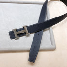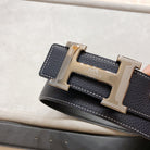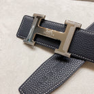 HM H D'ANCRE BELT BUCKLE & REVERSIBLE BLACK LEATHER STRAP 38 MM GREY SILVER HARDWARE