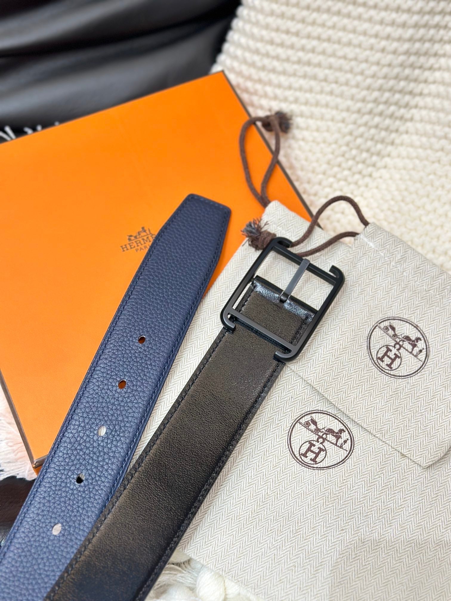 HM HADRIEN 38MM REVERSIBLE BELT NAVY BLUE AND BLACK LEATHER BLACK BUCKLE