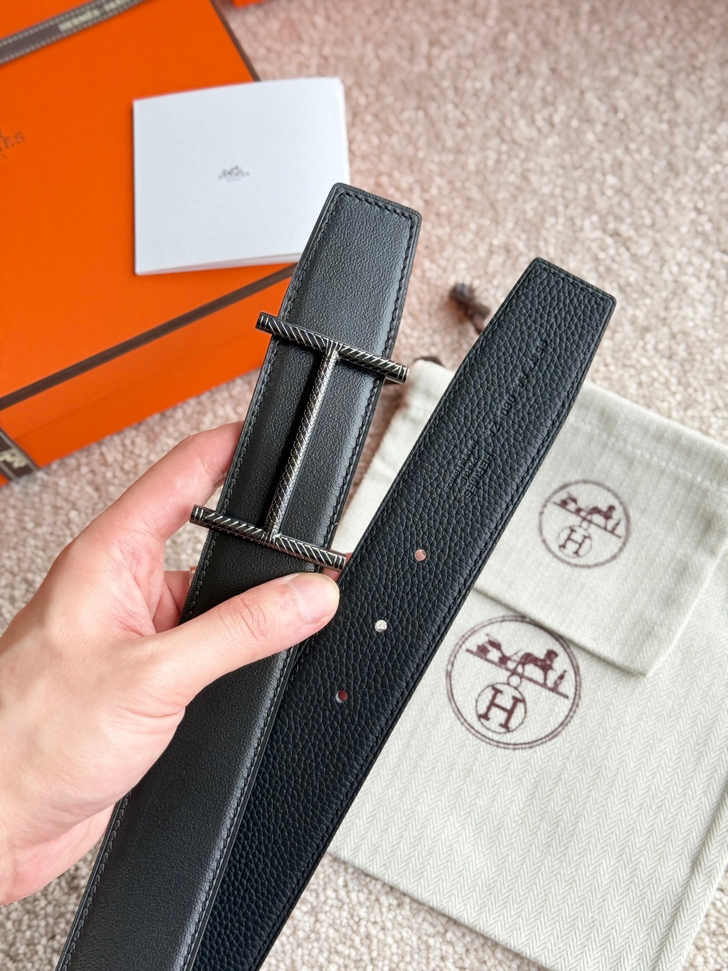 HM Hisseo Buckle Belt 38mm Black Calfskin 187505