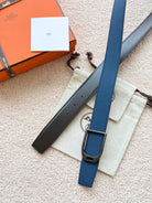 HM Jockey Buckle Belt 38mm Prussian blue Black Leather 187521