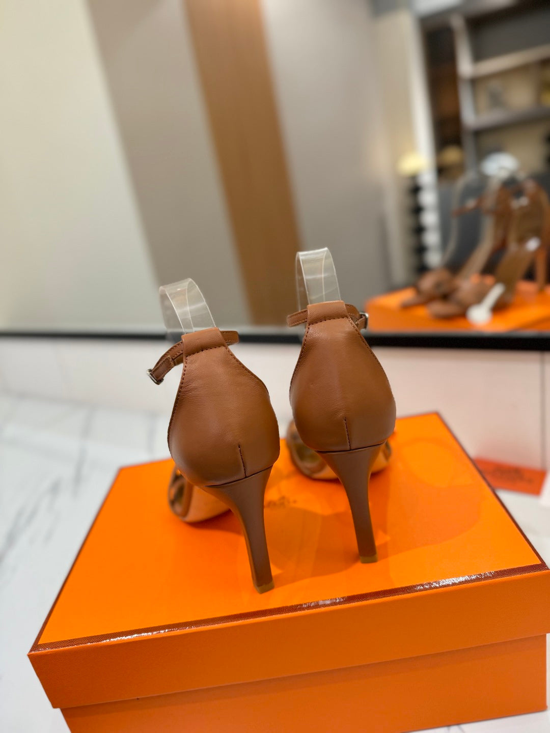 HM Joy 90mm Heeled Sandals Brown Flat Cowhide 294919