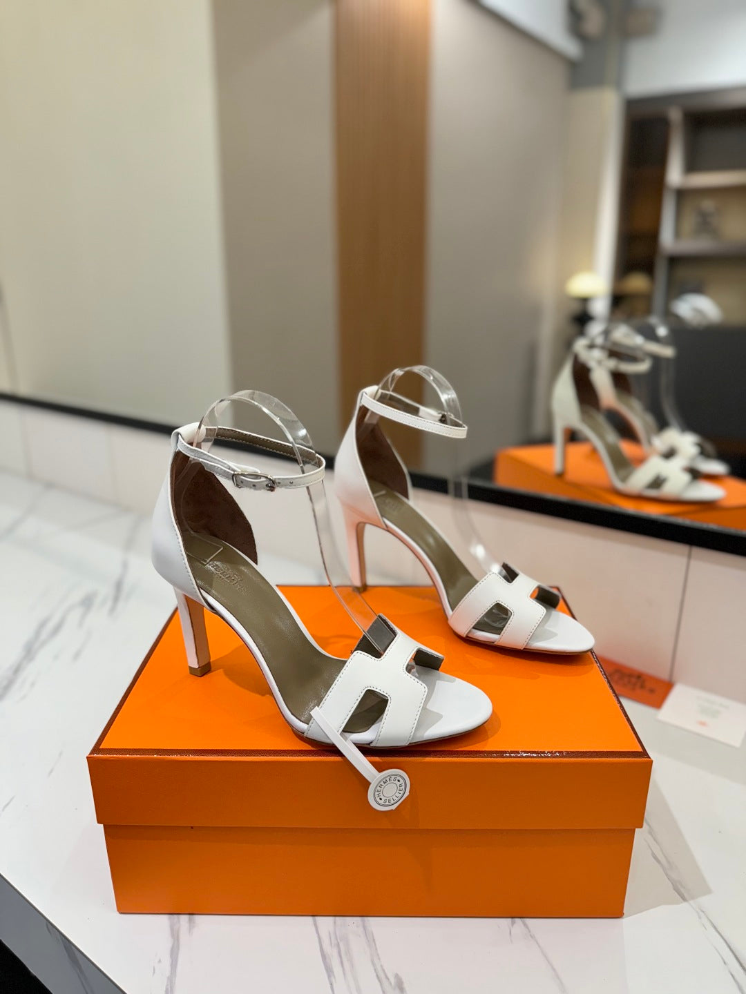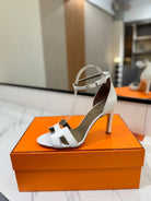 HM Joy 90mm Heeled Sandals White Flat Cowhide 294916