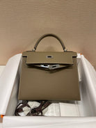 HM KELLY 28CM ETOUPE EPSOM LEATHER SILVER HARDWARE