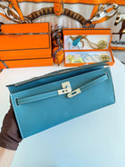 HM Kelly Cut 31 Teal Blue Epsom Leather Silver Hardware 229063